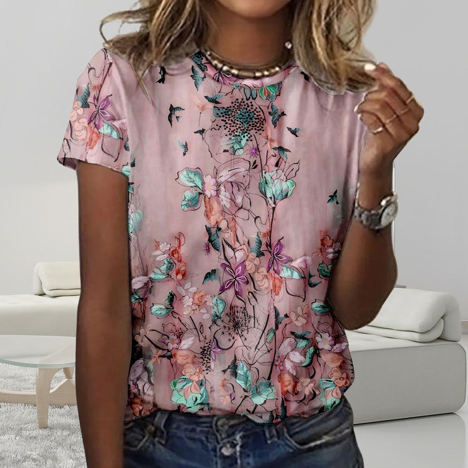 Digital Printing Loose Casual Women's Round Neck T-shirt