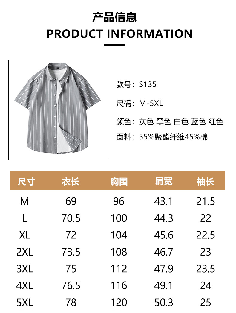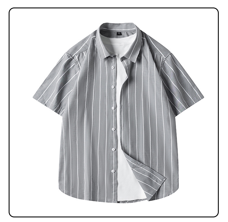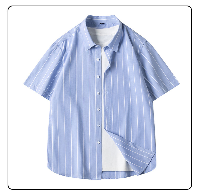 Men's Short-sleeved Shirt Business Striped Casual Shirt