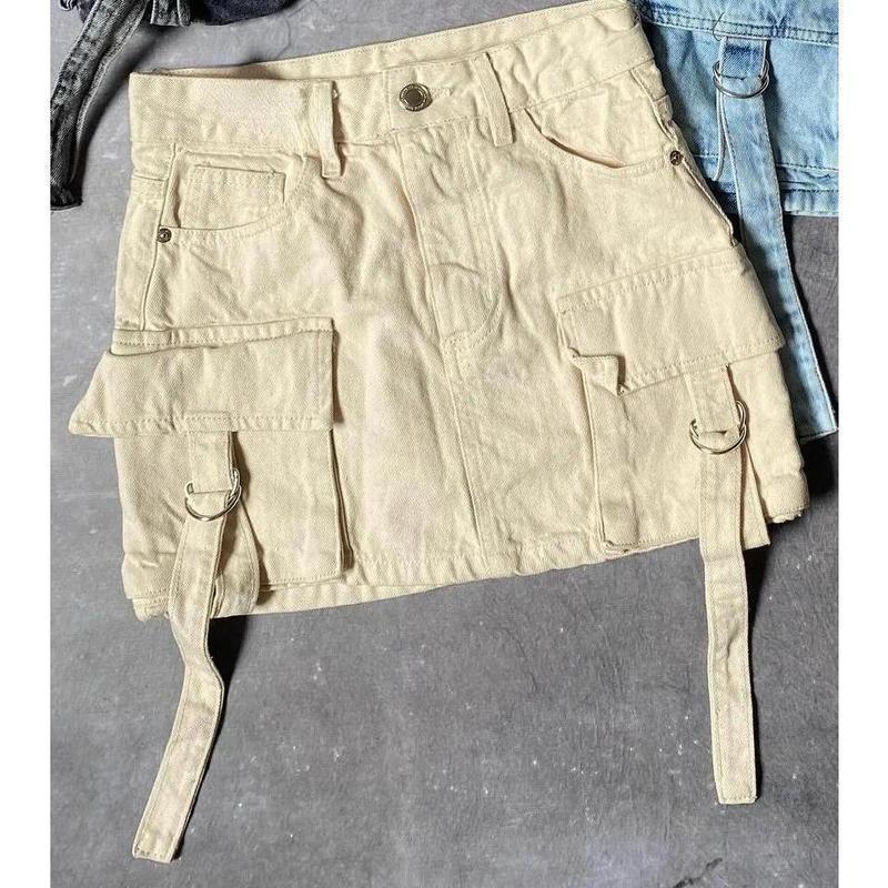 Multiple Pockets Denim Plaid Skirt Vintage Goth Black Y2k