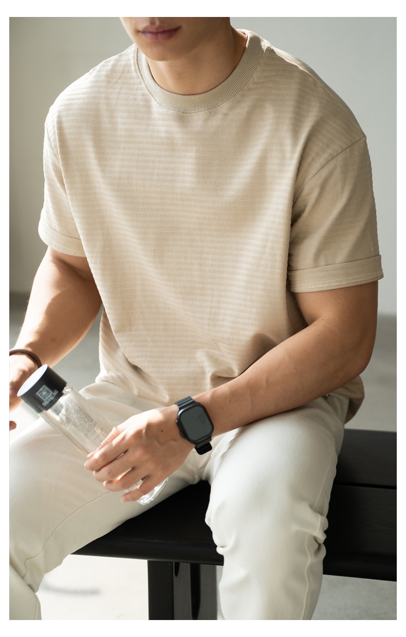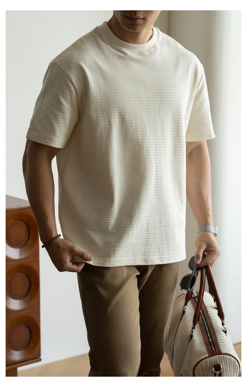 Raglan Sleeve Simple And Breathable Anti-wrinkle Striped Short Sleeve