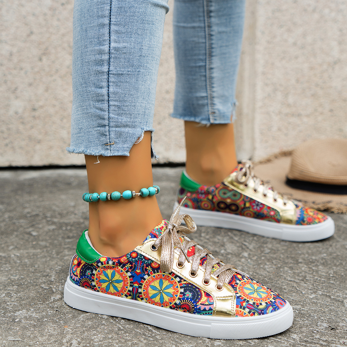 Round Toe Board Shoes Printed Canvas Women's Shoes
