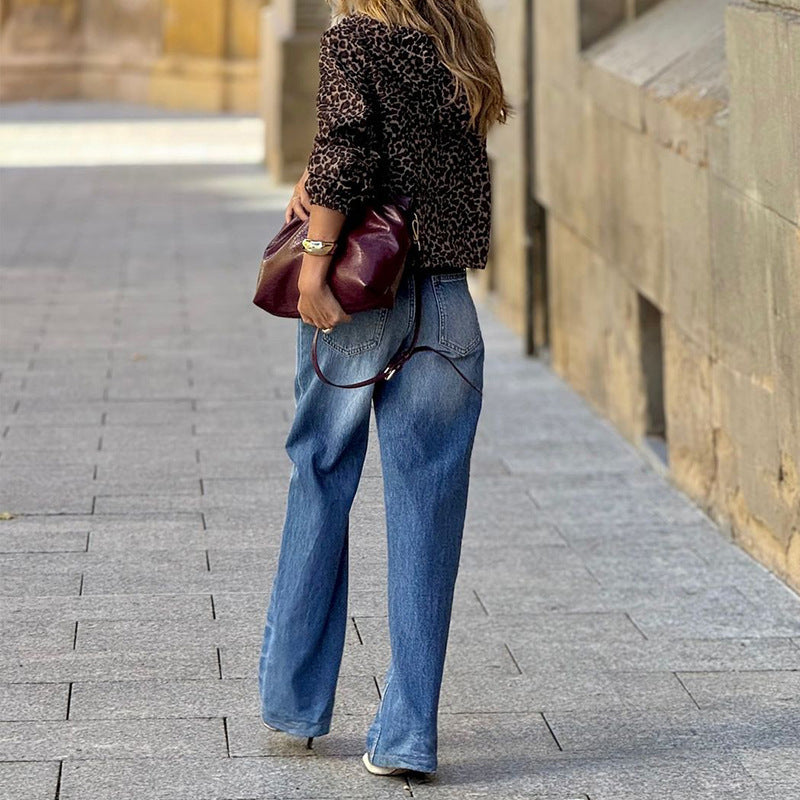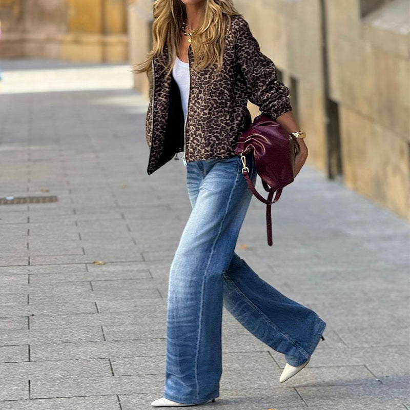 Temperament Long Sleeve Leopard Print Hooded Jacket