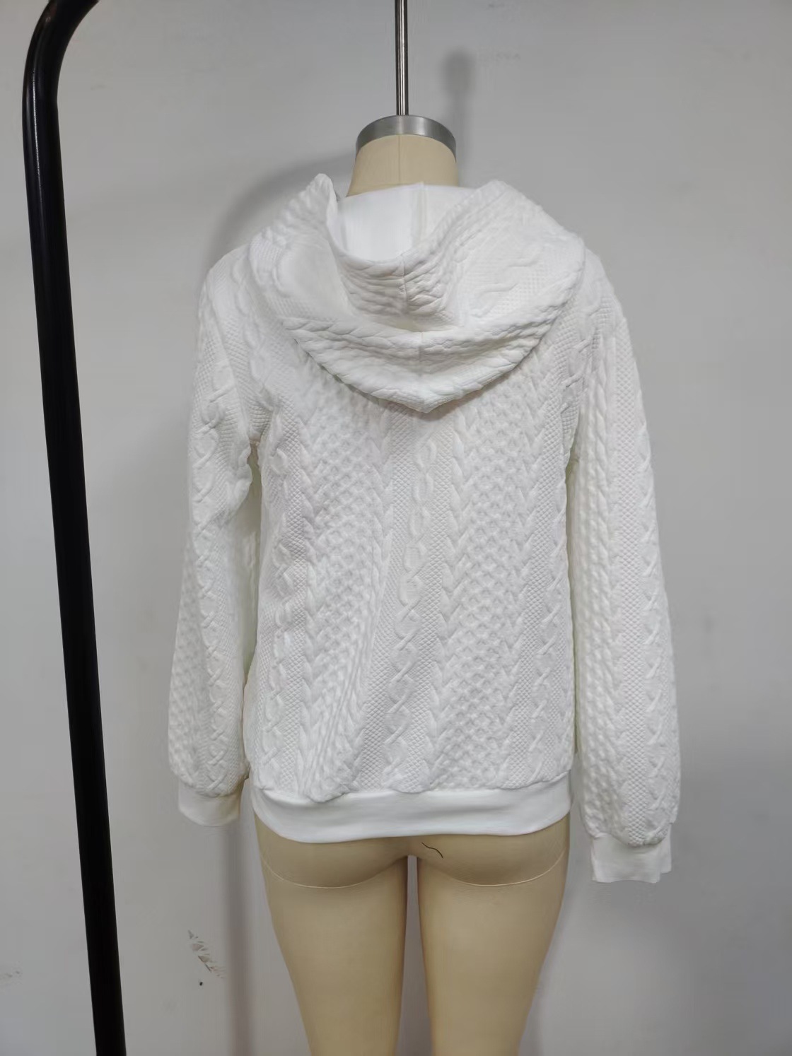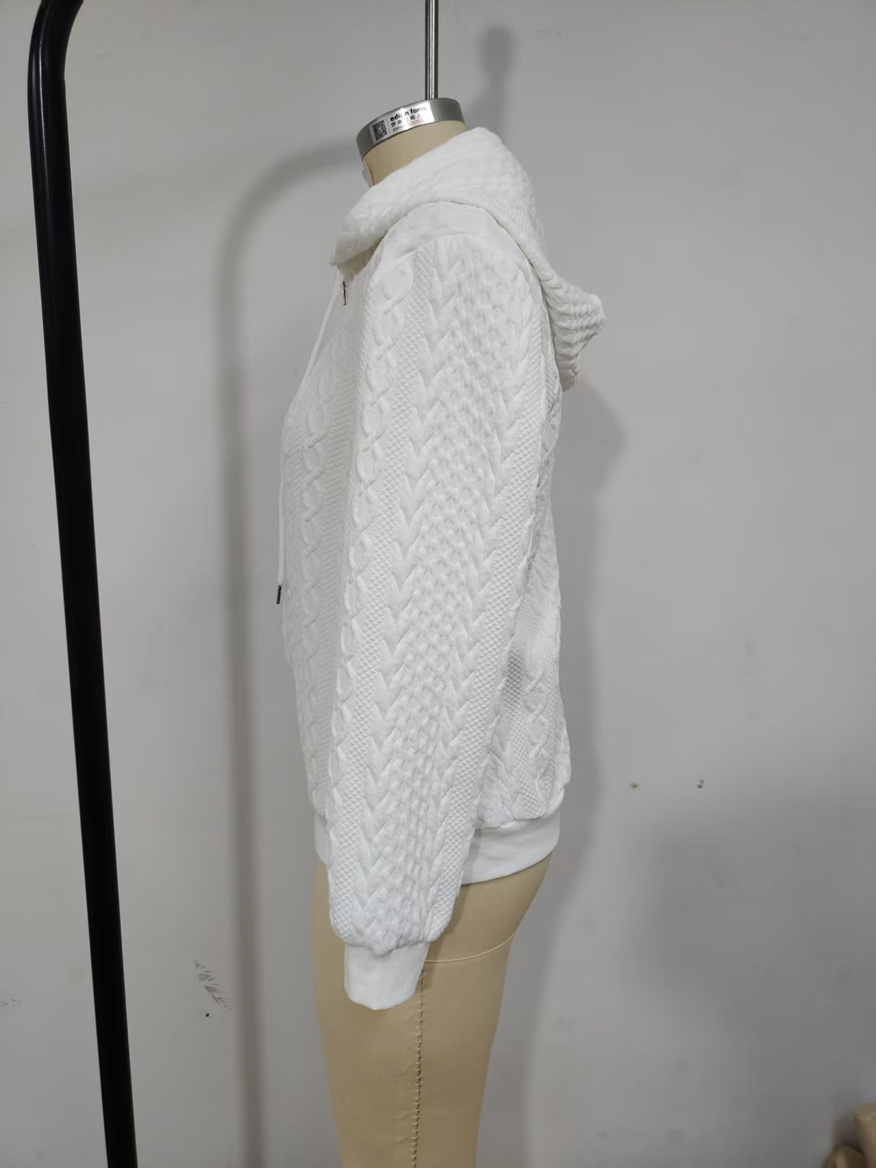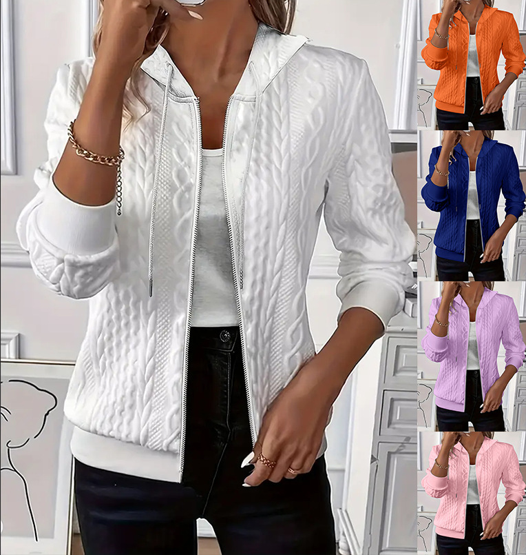 Women's Long-sleeved Knitted Zipper Hooded Jacket